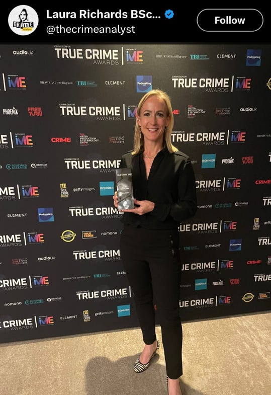 CrimeCon UK presented the inaugural event of ‘True’ Crime Awards in June 2023. Their website leads with:-