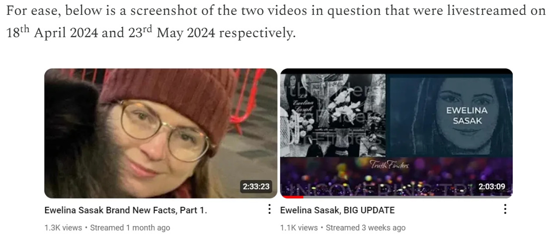 If the hoax sonar image circus act wasn’t bad enough, this also marked the start to the Sojkas hosting mockumentaries on their YouTube channel to muddy the waters about the fraudulent inquest presided over by Her Majesty’s senior coroner Dr. James Adeley. To those unfamiliar with their diabolical entertainment of Nicola Bulley’s death via livestream videos, it was Joanna Sojka who’d attended the inquest in person with whom arrangements were made with the Coroner’s office to gain access to a copy of the audio. This allowed the team to create the transcript required for their performances broadcast in the very poorest of taste.