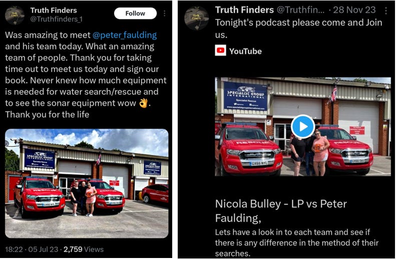 His puff piece documentaries were commissioned to manipulate an audience in the lead up to the absurd hoax sonar image ruse that had been planned to coincide with publication of the fraudulent College of Policing review in Nov 2023. Transparent to many, the notion that this alleged former chef so happened to be the only person on the planet that Peter Faulding confided of his “find” during his (scripted and staged) 3-day excursion (Feb 2023) in St. Michaels-on-Wyre was idiotic.