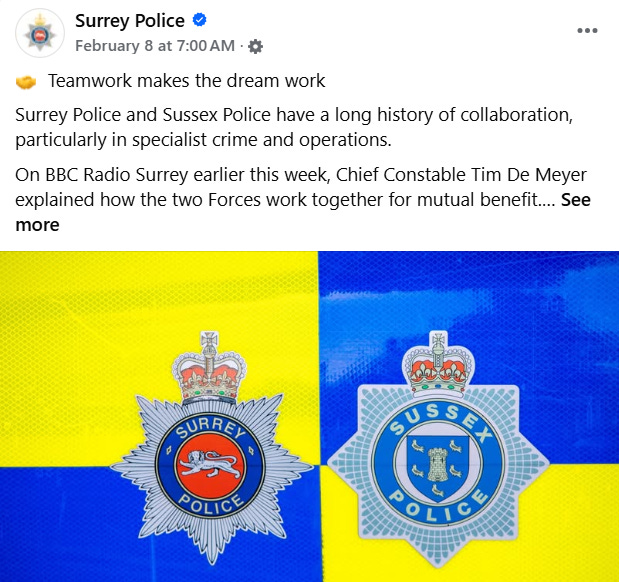 Chief Constable Tim de Meyer recently waxing lyrical about the ‘long history of collaboration, particularly in specialist crime and operations’ between Surrey and Sussex Police. This primarily refers to their joint Major Crime Team which reminds me I’m overdue to finish the short series of insightful posts into their greatest hits.