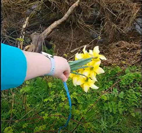 As an introduction, I long wondered if there was any symbolic significance to the still image above that was taken at the location where a body was widely reported to have been recovered (during a pre-scripted live media broadcast). Included within one of their Apr 23 videos when the duo were seeking to establish themselves as a team committed to investigating what really occurred, Joanna Sojka can be seen sporting a pale blue Fitbit similar to that of “the email account that was associated with that Fitbit” (quote from Michelle Sojka).