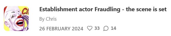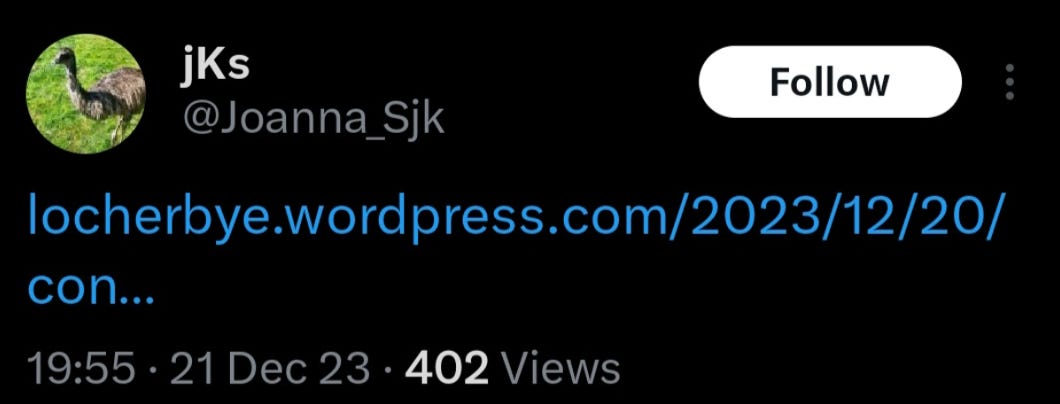 In early Jun 2023 unbeknown to me, Joanna Sojka had subscribed to Substack to automatically receive each newly published post of mine by email. The team could continue to monitor my posts, but never once comment or like, which would have notified me to their readership. This was until 9th Mar 2024 which I describe later.